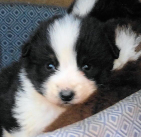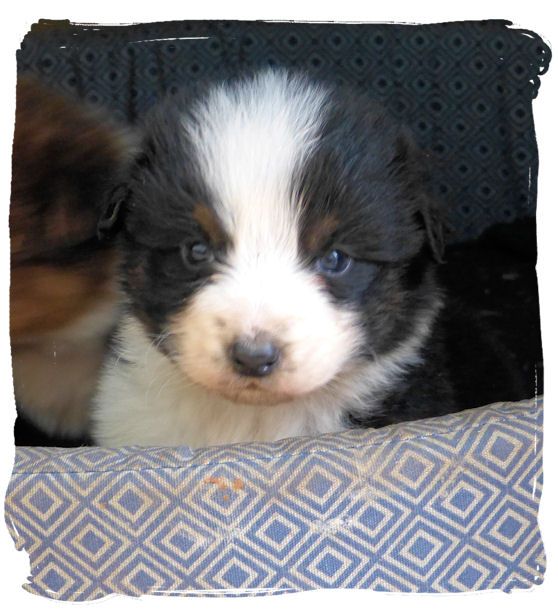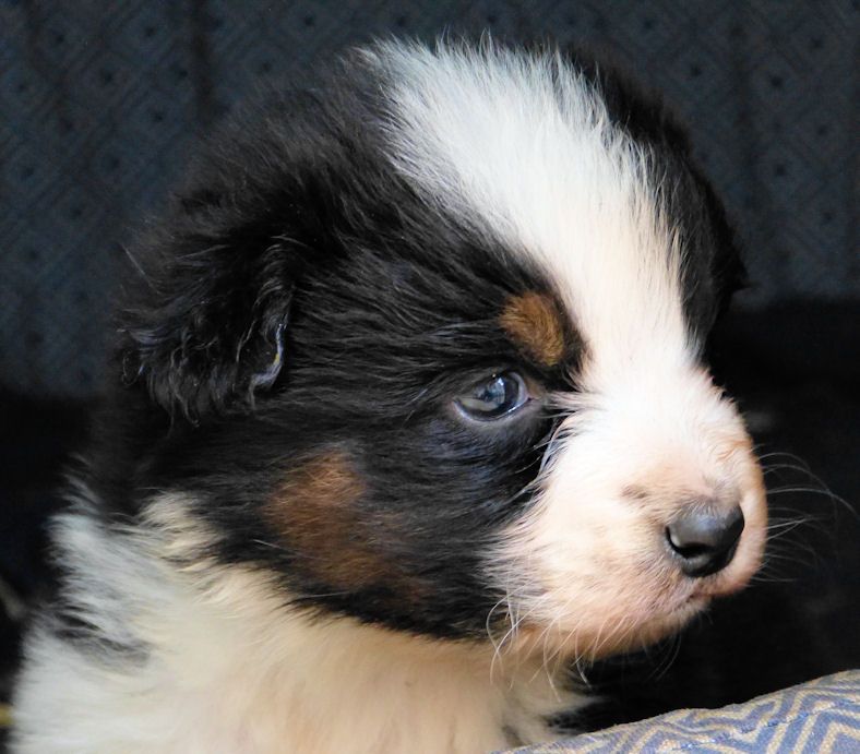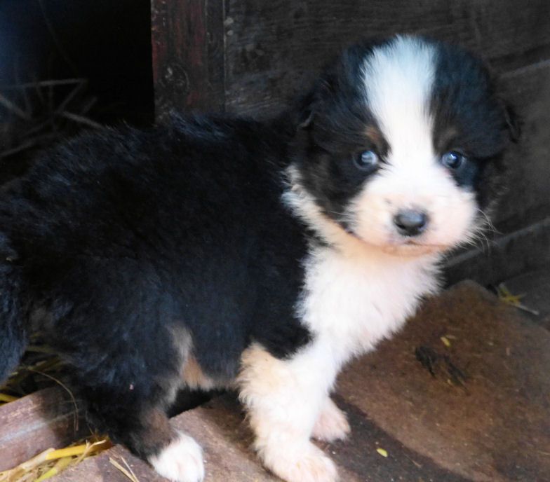Mâle noir tricolore à queue longue. Chiot élevé "en plein air", rustique, nourri au BARF. Il partira pucé, vacciné, avec son document LOF et un certificat de bonne santé.